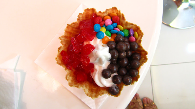Nesse dia, escolhemos yogofresh pequeno com 3 toppings. O meu escolhido foi o original (bem azedinho), acompanhado de MM´s, cereja, e nescau ball...bem light! hehehe